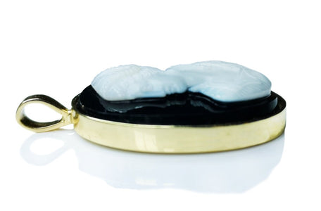 A stunning reimagined cameo pendant carved in sardonyx hardstone.