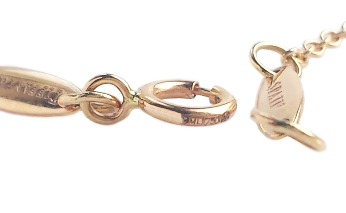 The necklace is signed Tiffany & Co. AU750 Spain ©Peretti. With additional UK hallmarks for 18k gold.