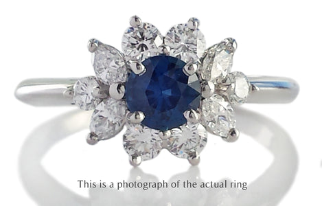 Vintage Sapphire Diamond Cluster Engagement Ring