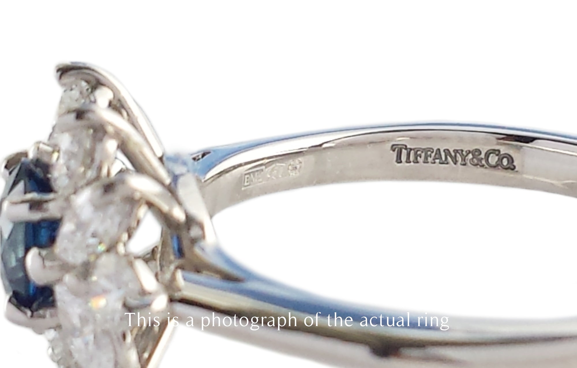 Inside the band the ring is stamped ©Tiffany & Co. PT950. With additional UK hallmarks for platinum.
