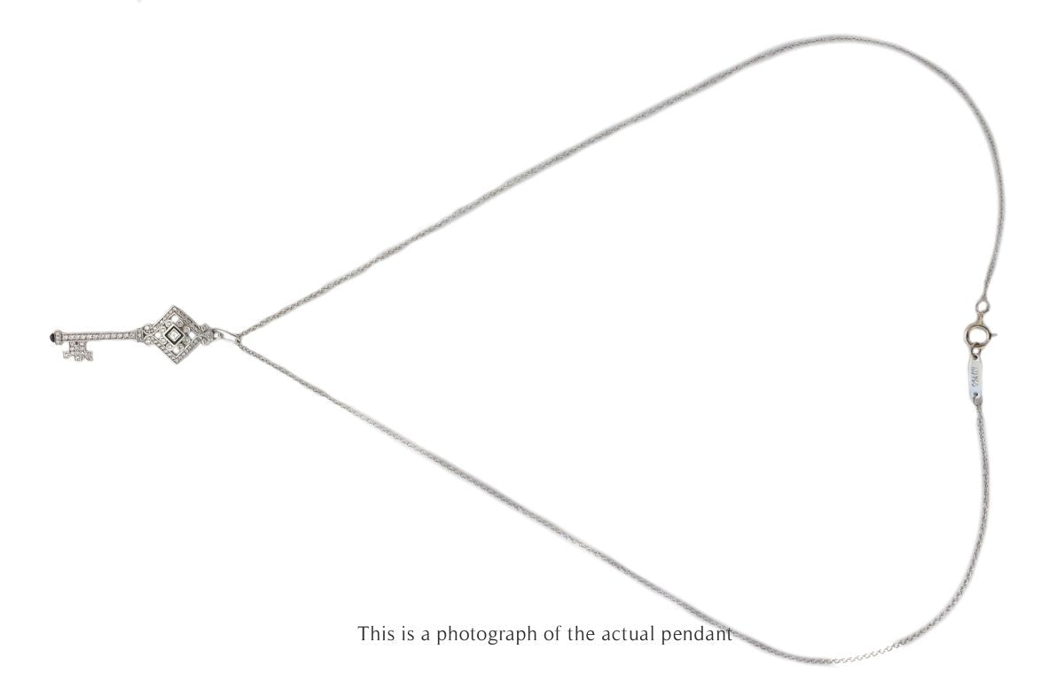 Tiffany & Co. Diamond & Enamel Key Pendant in 18k White Gold