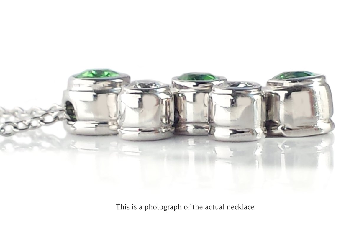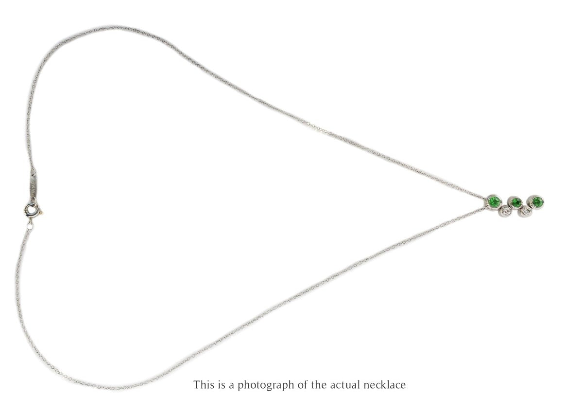 Wow your friends with this unusual Tiffany & Co. Diamond and Tsavorite Garnet Pendant. Set in platinum, this piece is from the Tiffany & Co. 'Bubbles' collection from 2002. The pendant hangs on a fine platinum chain, 16 inches in length.