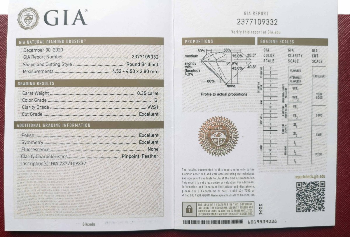 Of course, it's not the design alone, but the quality of the diamond that counts. And this 0.35ct G/VVS1 is no exception; a truly mesmerising diamond with deep sparkle and fire. It's accompanied by the original GIA Certificate issued by Cartier.