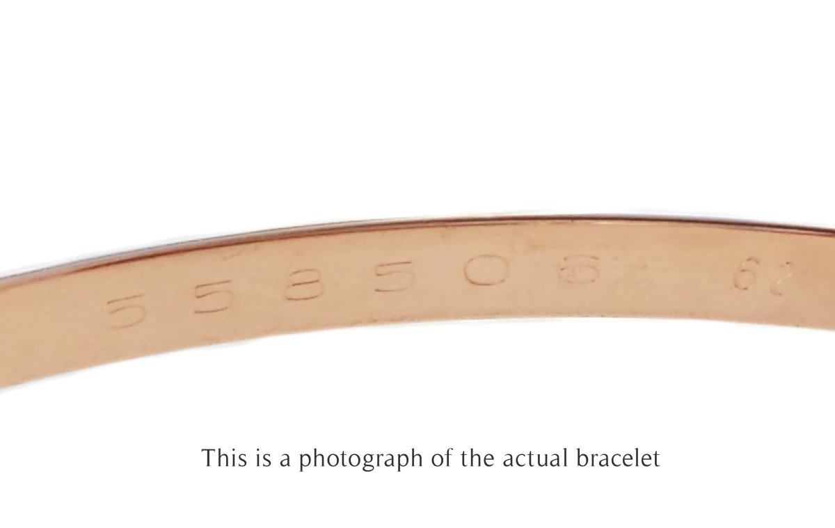 Inside the bangle, it is signed Cartier 750, with a unique serial number and convention hallmarks for 18k gold.