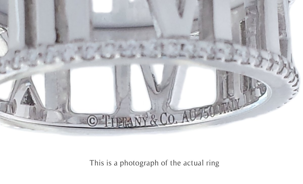 Our photographs clearly show the crisp stamps: Atlas Tiffany & Co. Italy 750. Additional UK hallmarks.