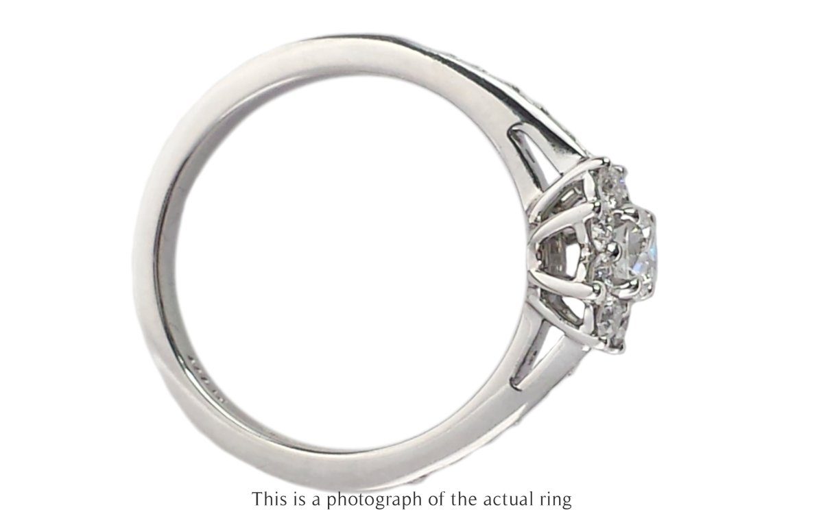 A wonderful vintage Flower Cluster Ring by Tiffany & Co, set with a central round brilliant cut diamond of approximately 0.25ct surrounded by a further 0.25ct of round brilliant natural white diamonds in a flower arrangement. The shank contains a further 0.20ct of natural diamonds. The diamonds are all of minimum G/VS colour and clarity.