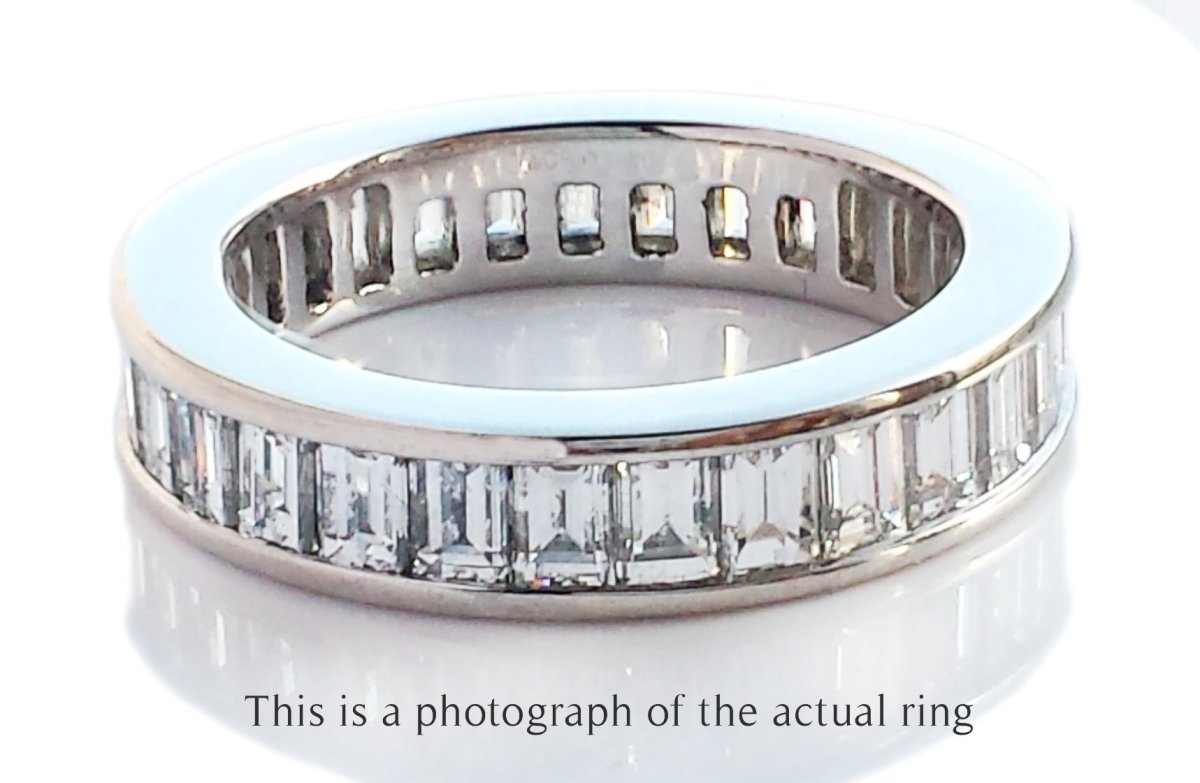 A wonderful 4mm Tiffany & Co. Baguette Diamond Wedding Band Ring set with approx 1.70ct of brilliant white G/VS natural Tiffany diamonds.