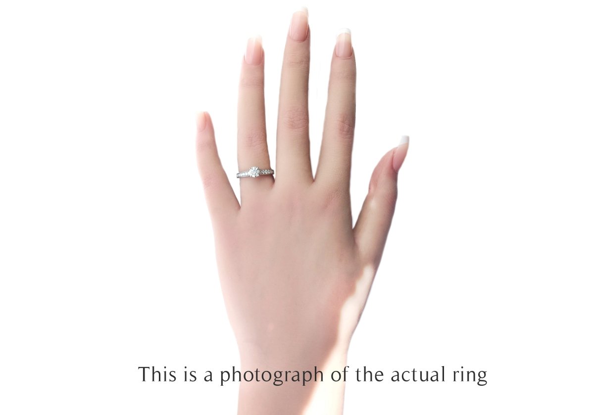 Of course, it's not the design alone, but the quality of the diamond that counts. And this GIA certified, 0.53ct H/VS2 diamond, is no exception, with truly mesmerising sparkle and fire. Additionally, the shoulders are set with perfectly matched graduated side stones totalling a further 0.20ct (approximately), making a total carat weight of 0.73ct.