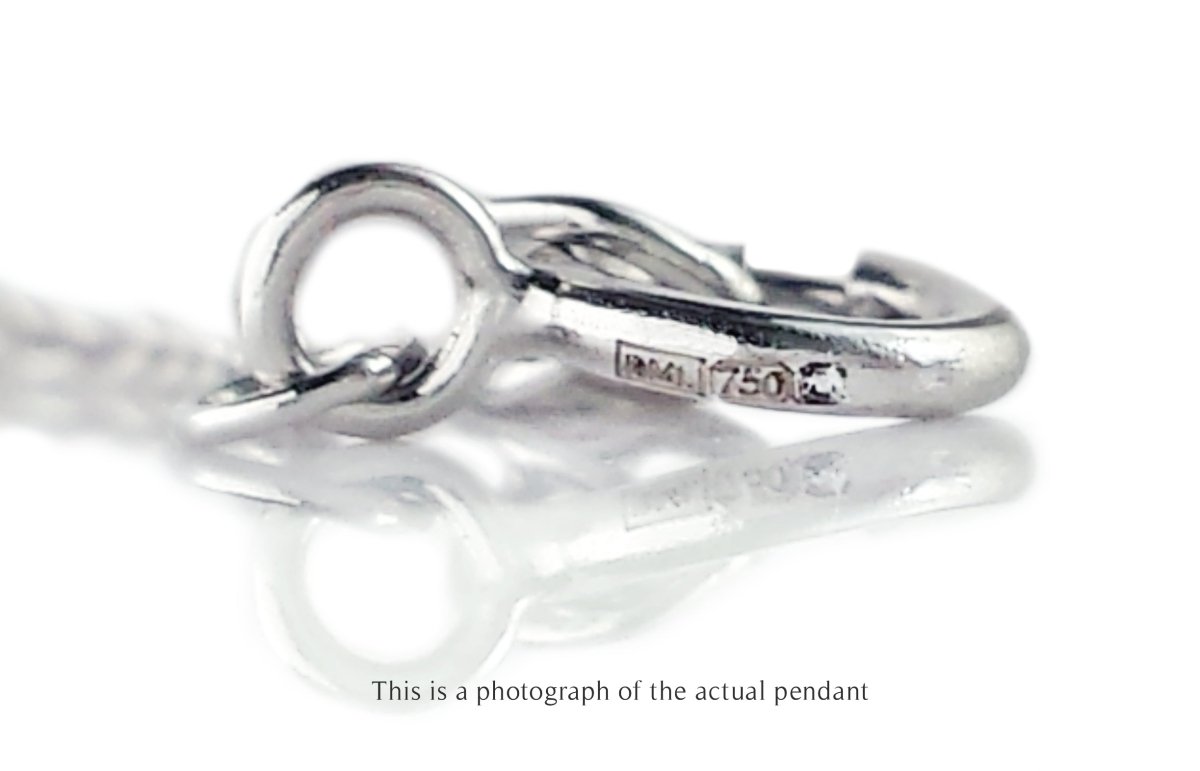 The Pendant measures 17.8mm x 11.5mm and weighs 3.6 grams; the chain length is 16 inches.
