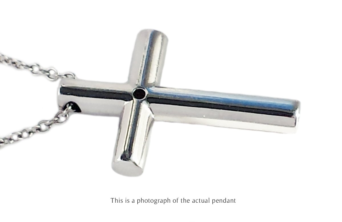 As the chain is integral to the pendant there is no loop at the top of the cross, making it very clean simple in design.