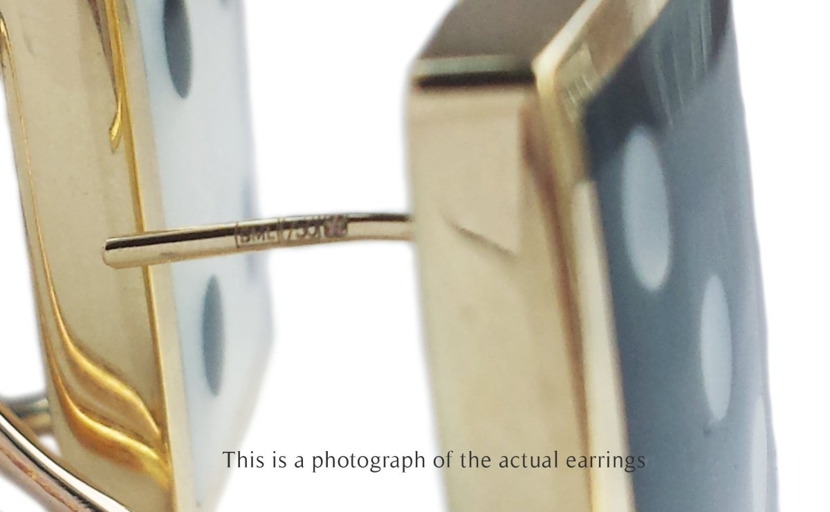 The earrings are signed Tiffany & Co. 750 with maker's mark for Angela Cummings and additional UK hallmarks for 18k Gold.